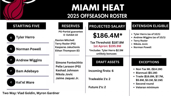 有动作?热火目前薪资低于奢侈税线400万 还能用全额中产了
