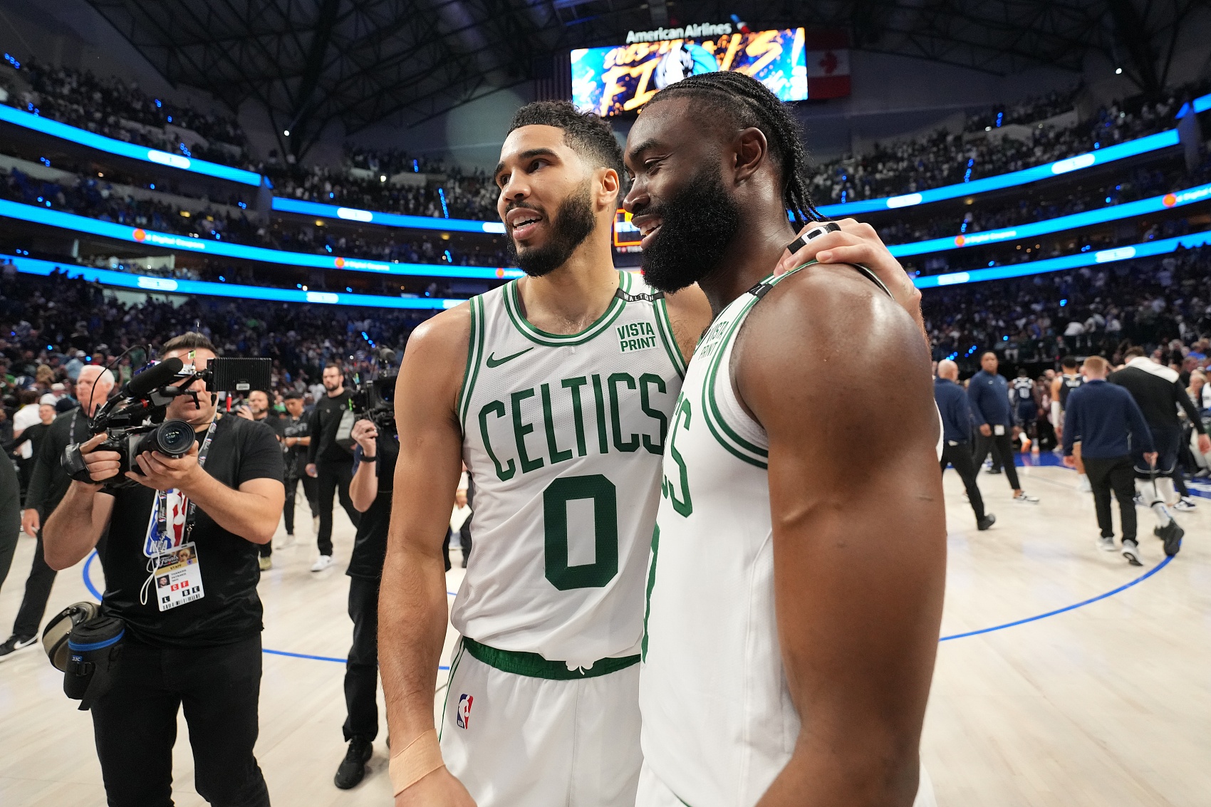 谈到凯尔特人队内最欣赏的球员时,何猷君说道:“有的有的,其实作为凯尔特人粉丝呢,我们当然喜欢我们的每一位球员,对于我来讲的话,(最喜欢的)肯定是杰伦-布朗和塔图姆了。