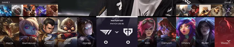 GEN选用:Kiin塞恩、Canyon蔚、Chovy阿萝拉、Ruler卡莎、Duro妮蔻