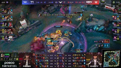 比赛第23分钟,两队爆发厄塔汗团。GEN先手打出1换3,但Faker发条神来之笔TP抢到厄塔汗并打出3换3。
